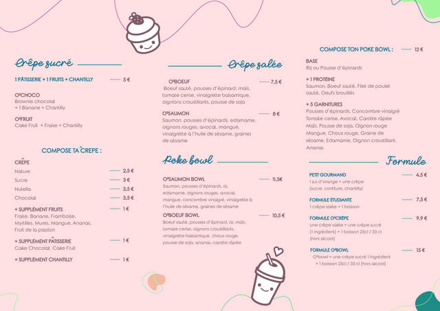 Poké bowl, smoothies, crêpes salées, sucrées, bubble tea et autres délices sont à découvrir.